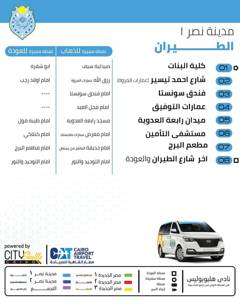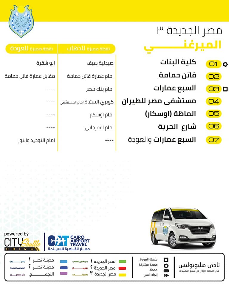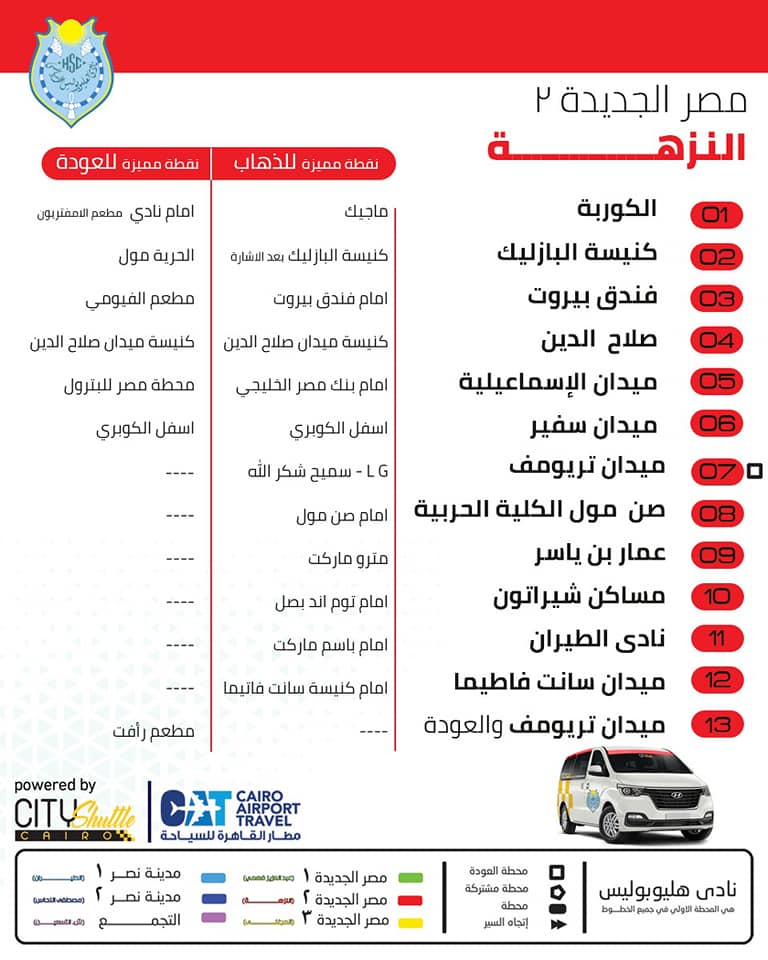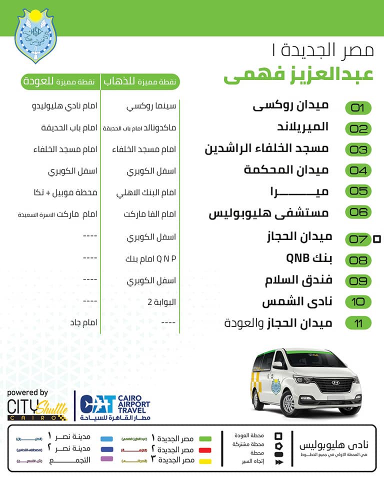 This distinguished service is provided from 9 am to 10 pm. Cairo International Airport Company also decided to provide the service free of charge for a week. Free tickets will be available at the main gate, accompanied by an questionnaire to know the opinion of the members on the provided service and the meting points.